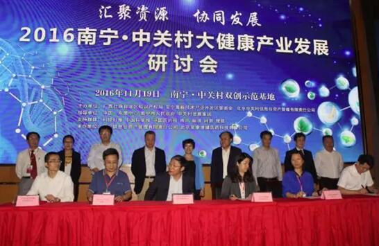 2016年11月19日,2016南宁·中关村大健康产业发展研讨会在南宁·中关村双创示范基地拉开帷幕,研讨会主题为“汇聚资源 协同发展” ,由广西壮族自治区知识产权局、南宁高新技术产业开发区管委会、北京中关村信息谷资产管理有限责任公司主办。